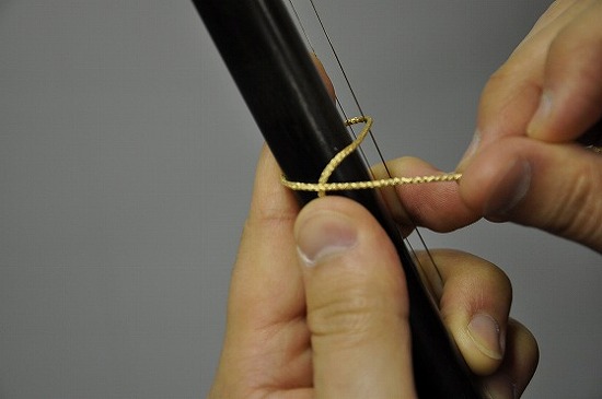| 5.糸を弦の外側にまわしひと巻きします |